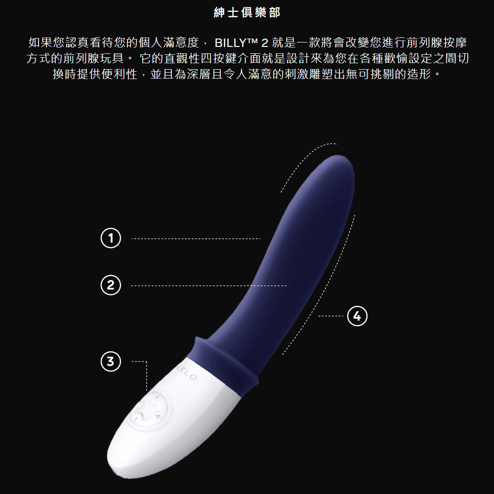 如果您認真看待您的個人滿意度, BILLY 2 就是一款將會改變您進行前列腺按摩方式的前列腺玩具。 它的直觀性四按鍵介面就是設計來為您在各種歡愉設定之間切換時提供便利性,並且為深層且令人滿意的刺激雕塑出無可挑剔的造形。