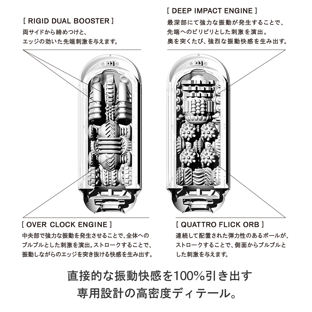 共有五段不同的震動模式,讓你一層一層去嘗試和挑戰。杯身整體全防水設計,不用擔心漏電、燒毀等等煩惱,即使你而已擁有了ZERO,亦不可以錯過這款全新的TENGA FLIP 0 (ZERO) ELECTRONIC VIBRATION!!