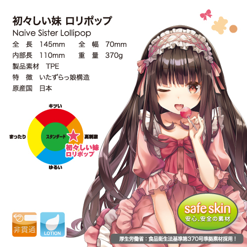 Toys Heart - 甜美系蘿莉塔小穴 (初々しい妹 ロリポップ),喜愛吃棒棒糖的她,小穴也跟隨著上面的嘴巴喜歡含著肉棒,完美貼合的肉壁即插入就感受到她的肉穴如同嘴巴般將你含著,粗大的肉紋擁有強大的壓迫感,就算深入她也不會放過,直至到達她的子宮讓她滿意了,才到你享受的時間,但子宮360度無死角的肉粒,試問又有誰人支撐到十秒。